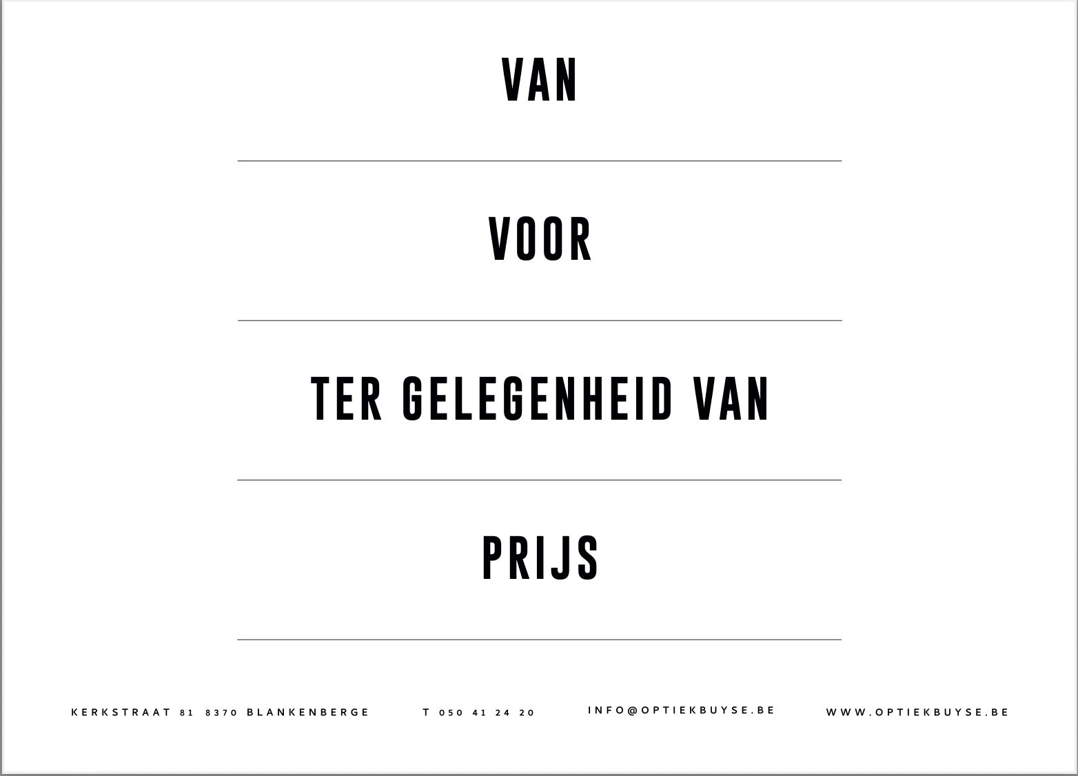 Op zoek naar het perfecte geschenk? Met de cadeaubon van Optiek Buyse schenk je niet alleen stijl en kwaliteit, maar ook een ruime keuze aan zonnebrillen, optische brillen en zoveel meer.